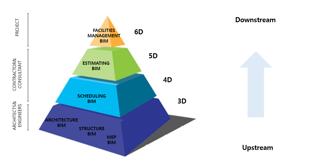 아래 그림처럼 설계단계에서 차곡차곡 쌓은 데이터 를 기초로 그 위에 다음 단계에서 BIM Data가 활용된다고 이해하는게 맞습니다. 데이터의 정합성이 초기부터 확보되어야하는 이유입니다.
