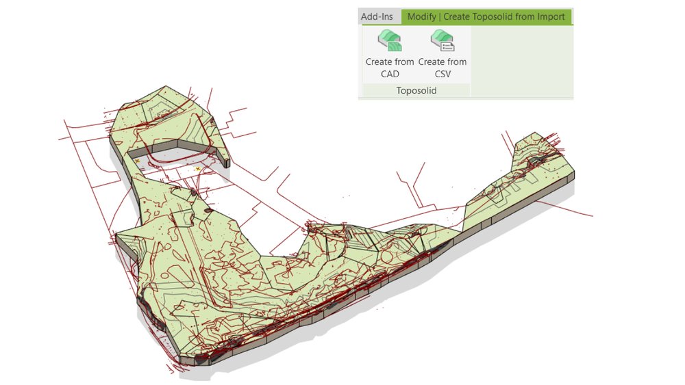 이전처럼 CAD 또는 CSV 파일에서 Toposolid를 계속 생성할 수 있습니다.